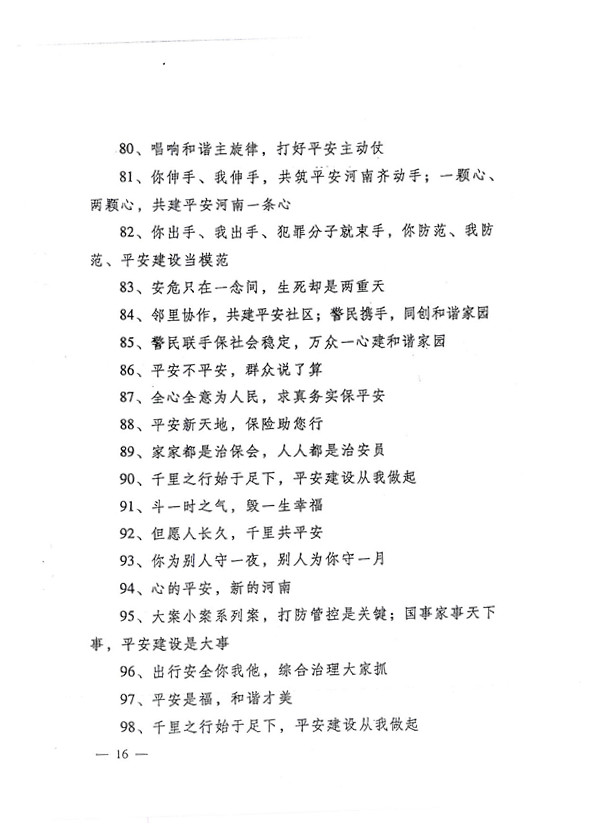 平安兩字重千斤,社會(huì )穩定得民心。 創(chuàng )建平安人人有責,構建和諧人人參與。
