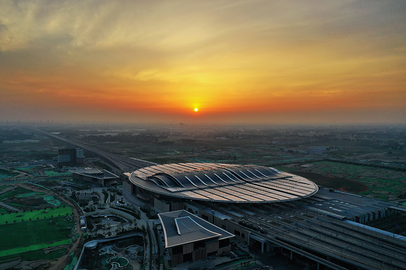 這是京雄城際鐵路雄安站(7月1日攝,無人機(jī)照片)。新華社記者 牟宇 攝