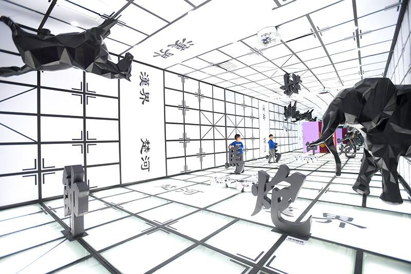2019年9月21日,小朋友在湖南省長(zhǎng)沙市“字在其中”漢字國(guó)潮藝術(shù)展上參觀。新華社記者 陳澤國(guó) 攝