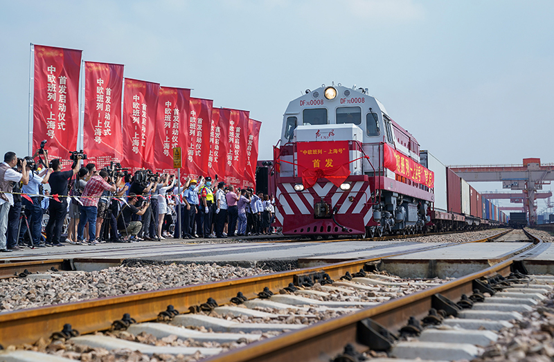 “上海號(hào)”中歐班列從上海首發(fā),駛向德國(guó)漢堡(9月28日攝)。新華社記者 丁汀 攝