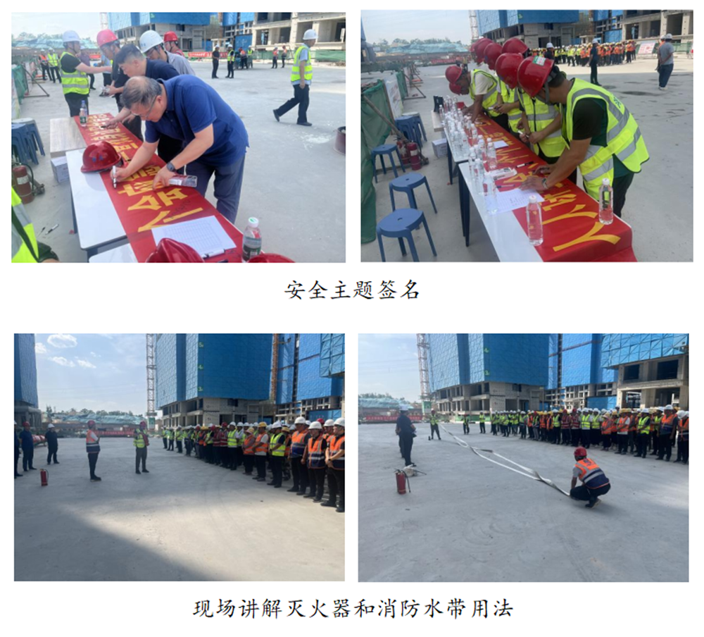 活動(dòng)期間,大家積極參與安全主題簽名和主題宣誓,講解員現(xiàn)場(chǎng)講解消防水帶和滅火器的用法,解答安全生產(chǎn)相關(guān)知識(shí),并開展了消防實(shí)戰(zhàn)演練。集團(tuán)公司分管安全生產(chǎn)的總經(jīng)理助理黃志澎作重要講話,強(qiáng)調(diào)了安全生產(chǎn)的重要性,要求各單位扎實(shí)做好今年防汛工作,并為一線工人發(fā)放防暑降溫藥品和安全知識(shí)手冊(cè)200套。